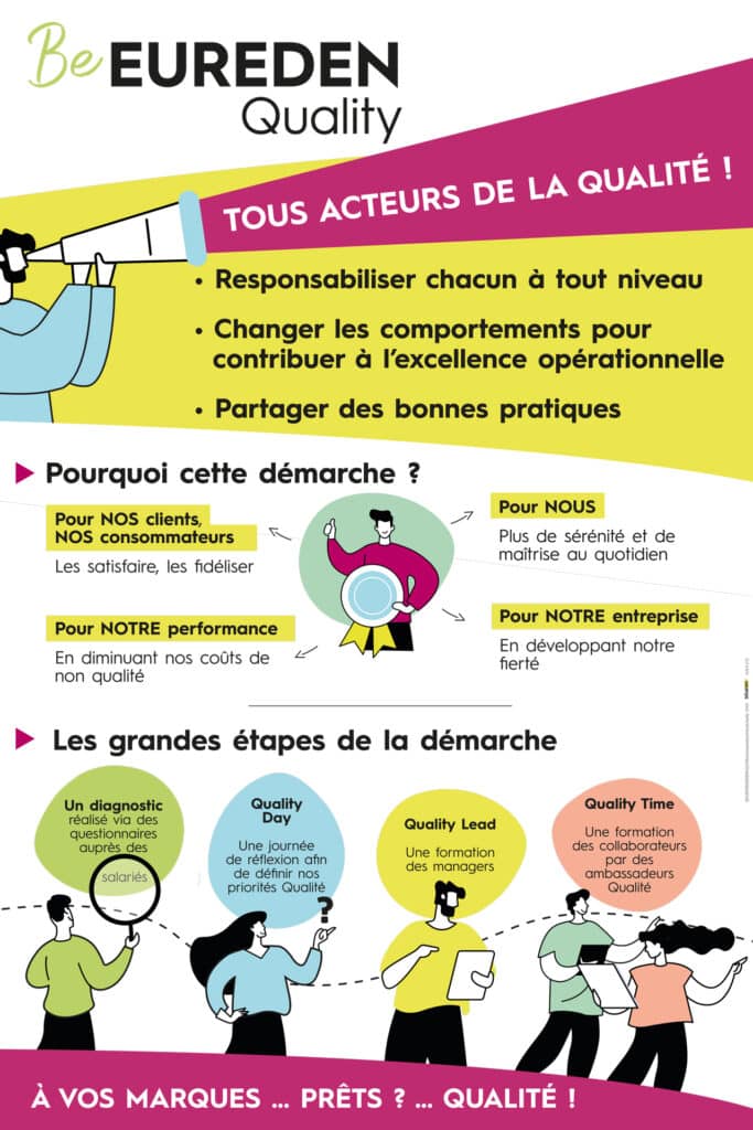 Cette dynamique nouvelle mise sur l’autonomisation et la pérennisation. Après les managers en 2022, Quaternaire s’apprête à former des équipes d’ambassadeurs Qualité identifiés dans chaque branche, chaque métier, chaque usine, afin que ces derniers deviennent à leur tour formateurs pour leurs collègues opérateurs. D’ici la fin 2023 l’ensemble des collaborateurs Eureden aura été sensibilisé à la nouvelle culture Qualité du groupe, pour des performances accrues sur le terrain.