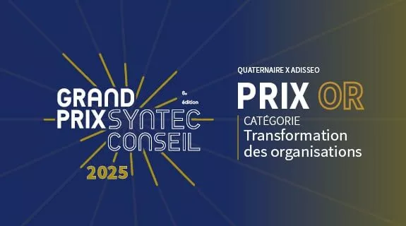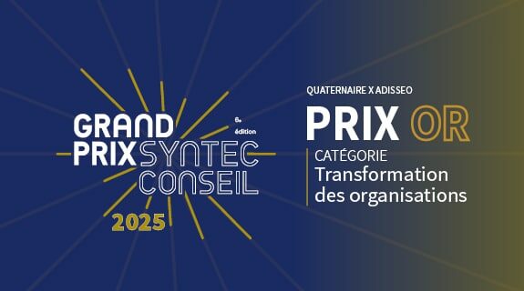 Quaternaire est fier d’annoncer que le projet REBOOST, mené aux côtés d’Adisseo, a remporté la médaille d’or du Grand Prix Syntec Conseil 2025, dans la catégorie Transformation des organisations.
