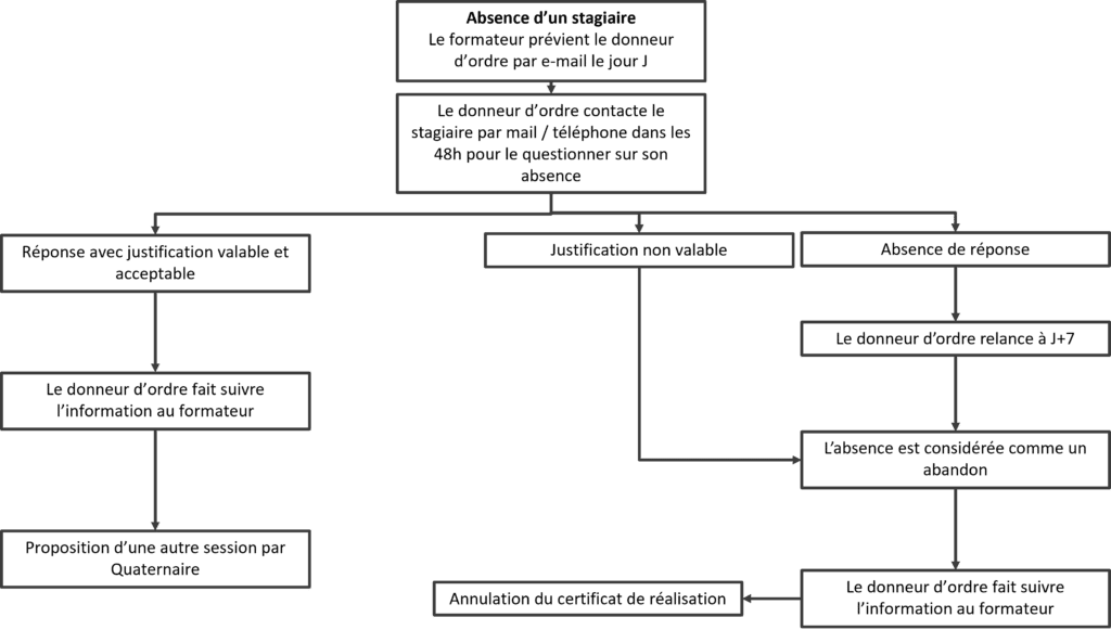 Lors d’une formation intra-entreprise, le client se voit responsable de l’organisation logistique de la formation, de l’envoi de la convocation aux stagiaires, et du respect des horaires par ces derniers.